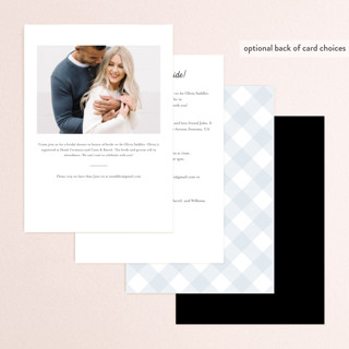 All our bridal shower invitations can be customized to your personal preferences. Compose new text to appear on the card and easily change the font, sizing, coloring, and placement of the text. Update the back of the card to incorporate personal photos. We even provide filters to professionally adjust the image to appear in black and white or sepia. Our easy-to-use online customization tools will set you up for success. If at any time you have questions, you can chat instantly with our team through our website or consult with our design associates who will review your design and provide feedback.