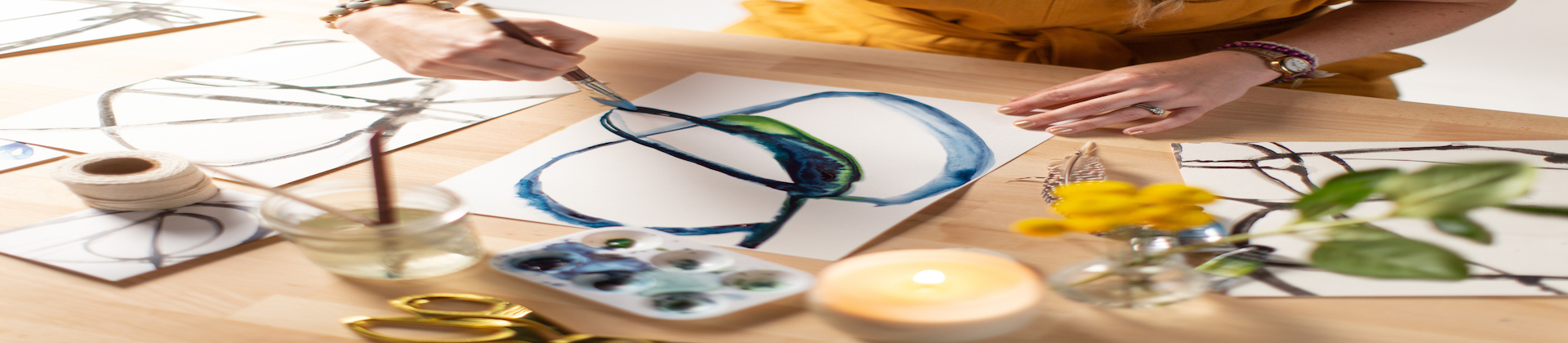 This photo will appear at the top of your artist overlay, which appears when customers click on your name. Please upload a "cover photo" that reveals your workplace, tools, or a detail or pattern from your work. We'll apply a transparent overlay on top of your image to ensure legibility of your hand-written name and artist information.