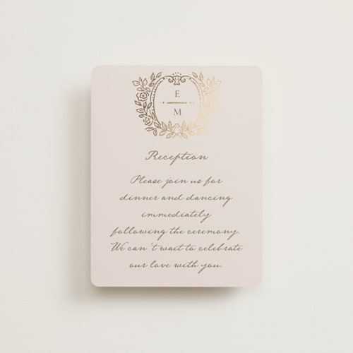 Weddings can be complicated and Minted’s enclosure cards can help provide needed clarity. Whether your wedding is on a remote beach or at a grand city venue, wedding enclosure cards are the best way to provide your guests with a pocket-sized insert on everything they need to know when it comes to arriving at your venue and preparing for the day. Having a black-tie wedding or a backyard garden soiree? We have aligned design themes that can let your guests know the appropriate attire for your special event. Our inserts are an elevated option for providing more of the important details to your guests without taking away from the beauty of the invitation. They can be added to any invitation suite and paired to fit perfectly with your RSVP cards.
