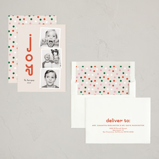 Minted’s “Joy” Christmas cards make it easy for you to express the happiness that is in your heart. Browse through designs that shine the spotlight on the love shared by romantic couples, the innocence and happiness of children, and the playfulness of pets. Simple phrasings of “joy”, “joyful” and “joy to the world” pair perfectly with the design imagery and colors in this collection of cards.