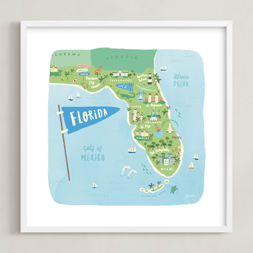 Each piece of kid's wall art is printed on high-quality matte paper. We offer the options to have each piece float-mounted for a modern finish or to have each piece matted for a traditional look. We also offer a new canvas option for an easy and lightweight alternative to a framed print. Canvas prints are ideal for kids’ rooms because they are durable yet easy to hang. And, if they are accidentally bumped off the wall, they do not risk the chance of shattering or hurting anyone. If interested, shop our full assortment of kid's wall art on canvas.