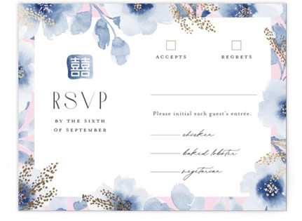 “Something Blue is inspired by Chinese vases in pink/blue shades, and I added a stamped “double happiness” for Chinese wedding tradition.