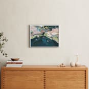 This painting in inspired by a trip to Mexico's Yucatan Peninsula where many cenotes (swimming holes) are found. The ancient Mayans believed cenotes were a place for ritual and transformation. This cenote is from the colorful and lively city of Valladolid! A vibrant and abstract painting with lots of deep blues, greens, warm neutral tones with touches of vibrant yellows and oranges. Painterly and layered, this piece is GREAT as a statement or part of a collection.