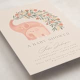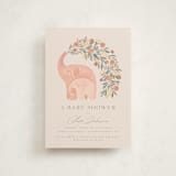 A sweet hand drawn baby shower invite featuring a mama elephant and her baby and a garden of flowers