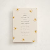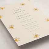 A baby shower invitation featuring textured suns