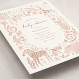 A fun and unique baby shower invitation with textured animals in a monochromatic palette.