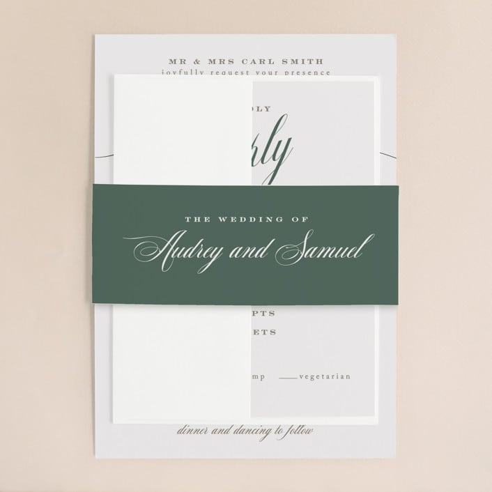 Select a matching belly band to hold together your wedding suite and add the perfect finishing touch to your invitation. Personalize with your names, wedding date, or a meaningful message. Includes clear stickers for a secure seal.