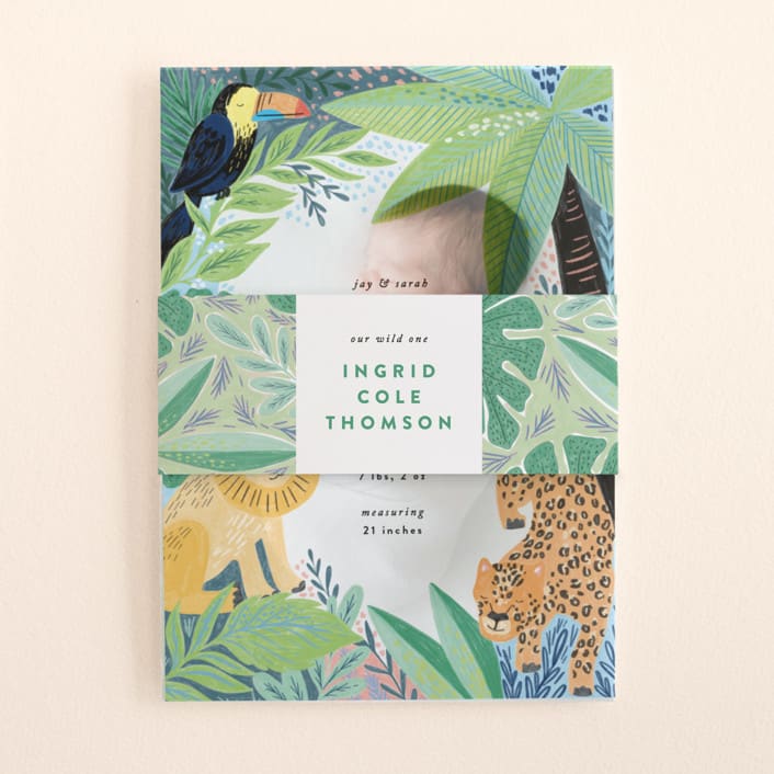Select a matching belly band to hold together your birth announcement and add the perfect finishing touch to your card. Personalize with a name, date, or a meaningful message. Includes clear stickers for a secure seal.