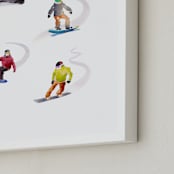 As a winter sports enthusiast, one of my favorite sights is the vibrant colors of skiiers and snowboarders set against the whitest backdrop of fresh snow. Captured here in watercolor, my piece is a joyful expression of the frosty fun of winter sports.