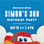 A modern illustrative birthday invitation inspired by a Lightning McQueen-themed party