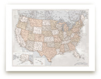 Detailed map of the USA in rustic styles by Rosana Laiz Blursbyai is no longer available for sale on Minted.