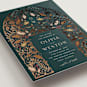 An arch of fall botanicals pressed in foil is featured in this Autumn themed wedding invitation design.