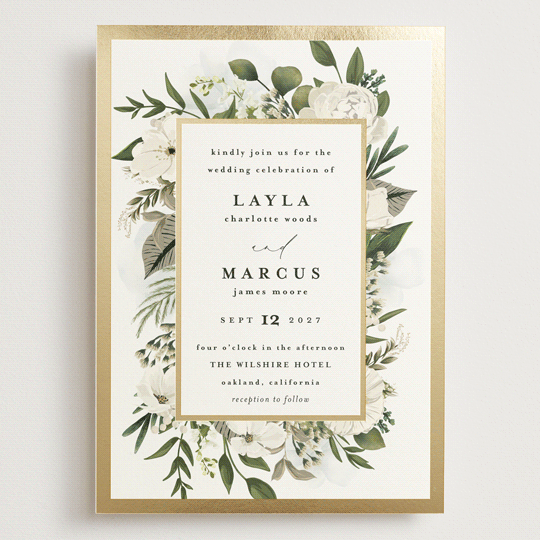 Created for you by Minted's global community of designers, our foil-pressed grand invitation designs will set the perfect tone for your wedding day at our largest format. At 6” x 8”, Grand Cards offer more room to share your favorite photo or a personal message. With unique designs printed on luxe paper, all wedding invitations are available with several matching accessories. If you have any questions or special requests for your invitations, please email us.