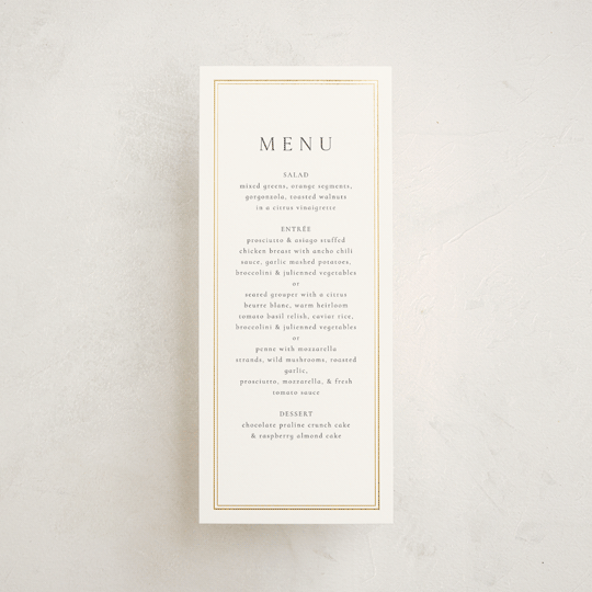 Give guests a sneak peek of the meal to come with these unique menus. All menus can be customized to match a Minted invitation design and printed in the color of your choice. If you have any questions or special requests, please email us.