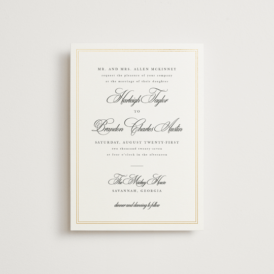 Created for you by Minted's global community of designers, our invitation designs will set the perfect tone for your wedding day. With unique designs printed on luxe paper, all foil pressed wedding invitations are available with several matching accessories. If you have any questions or special requests for your invitations, please email us.