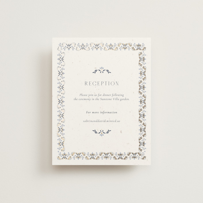 This wedding invitation features a beautiful golden islamic arch with an inlay frame and a beautiful calligraphy of Bismillah. Bismillah in Arabic means “In the name of Allah”.