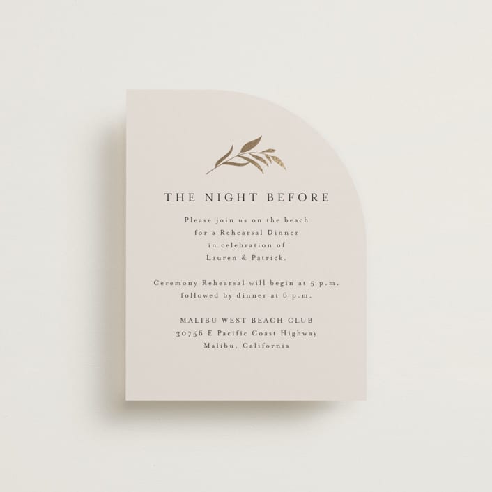 Beautifully invite your guests to your Rehearsal Dinner. Designed to coordinate with your wedding invitation suite, these Rehearsal Dinner enclosure cards are a perfect accompaniment to your Minted wedding invitation. Tie it all together with a coordinating belly band for a luxe finishing touch. Each insert card is fully customizable and printed on luxe paper.
