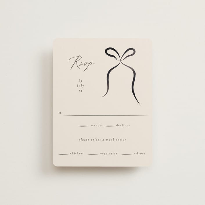 This whimsical hand drawn invitation features a touch of elegance with a watercolor bow.