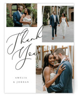 A unique and modern multi photo save the date card design featuring a flourish-y whimsical script font pressed in foil.