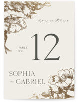 Foil-pressed table numbers enhance the look of your tablescape and put the finishing touch on your special day. All table numbers come with FREE custom text printing of the names or numbers of your tables. Double-sided printing is included in the price; choose to match the front or pick from any of our other text, photo, or pattern backers. Table numbers come in a flat or folded format. If you have any questions or special requests, please email us.