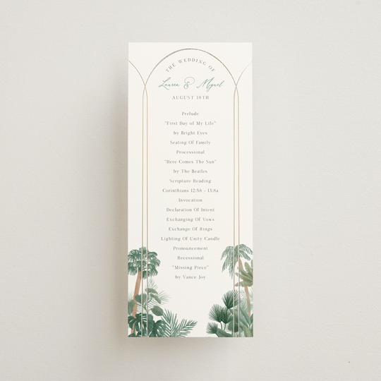 Share the details of your wedding ceremony with a beautiful foil-pressed wedding program, hand-pressed with real foil on luxe paper. All wedding programs can be customized to match any Minted invitation design and printed in the color of your choice. If you have any questions or special requests, please email us.