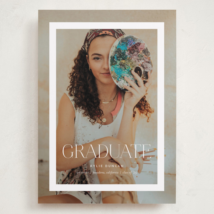 This graduation announcement features one full-bleed photo that is framed by a bold border.