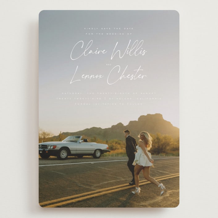 Make a statement with our NEW Grand Save the Dates. Get more room for a larger photo on these unique and modern save the date cards created for you by Minted's global community of independent designers. Don't have enough room on the front? Add a custom backer or interior to include even more photos and a more detailed message. If you have any questions or special requests for your Save The Date, please email us.