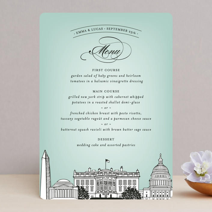 • "Big City - Washington DC" - Menus in Mint Green by Hooray Creative - Back of Card OptionsBack of Card Options