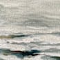 14"x 18" Abstract Oil Painting on canvas-wrapped panel board for easy framing. Deep blue accentuated by creamy white and yellow ochre textured brushstrokes in this abstract landscape.