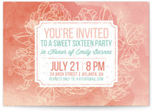 Watercolor Peonies Sweet Sixteen Party Invitations