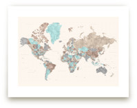 Highly detailed watercolor world map by Rosana Laiz Blursbyai is no longer available for sale on Minted.