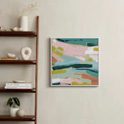 Acrylic and pencil abstract on wood panel. This abstract landscape was inspired by the colorful hills of France and the vibrant skies that accompany them. Painted on wood panel to let the texture shine, this piece is subdued yet full of life!