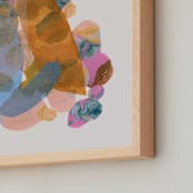 An energetic and colorful painting is the base for this multimedia collage. Large swaths of organic-shaped tissue paper contrast the small, dappled details within the painting. “Color frenzy” is both fearless and optimistic for me as it’s a departure from the usual restraint and tight compositions I typically create. The freedom of the circular forms within the painting challenged me to create a collage that overlays the bold painting while complimenting all of the forms in a visual frenzy.