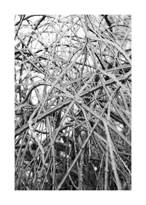 The beauty of winter is the quietness and softness a new snow fall brings. It forces us to slow down and be. This image is an original photograph taken after a covering of ice wrapped around all of nature trapping it inside. I hope you enjoy the graphic elements of the crisp blank and white lines the branch creates.