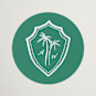 This one color wedding invitation features a hand drawn crest and two palm trees and casual typography for a bohemian vibe