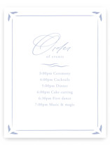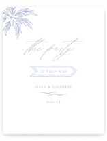 This wedding invitation features a minimalist watercolor design in shades of blue, capturing the serene beauty of ocean waves and the tropical charm of palm trees.