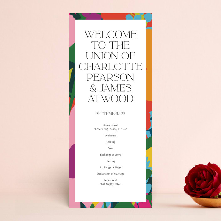 Share the details of your wedding ceremony with a beautiful wedding program printed on luxe paper. All wedding programs can be customized to match any Minted invitation design and printed in the color of your choice. If you have any questions or special requests, please email us.