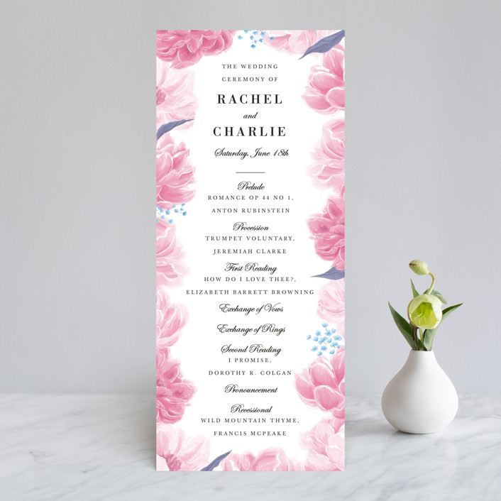 Share the details of your wedding ceremony with a beautiful wedding program printed on luxe paper. All wedding programs can be customized to match any Minted invitation design and printed in the color of your choice. If you have any questions or special requests, please email us.