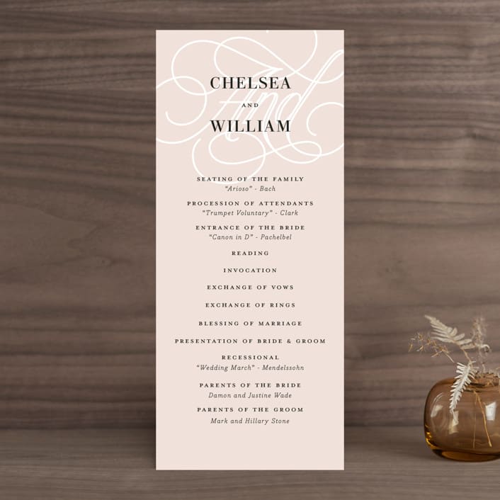 Share the details of your wedding ceremony with a beautiful wedding program printed on luxe paper. All wedding programs can be customized to match any Minted invitation design and printed in the color of your choice. If you have any questions or special requests, please email us.