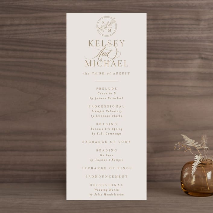 Share the details of your wedding ceremony with a beautiful wedding program printed on luxe paper. All wedding programs can be customized to match any Minted invitation design and printed in the color of your choice. If you have any questions or special requests, please email us.