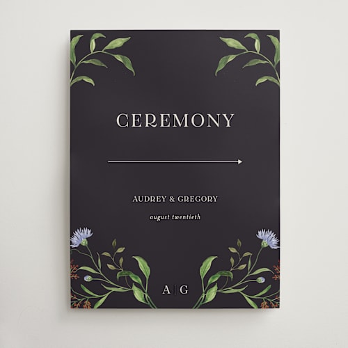Minted’s wedding signs are printed on premium materials to ensure durability and elegance. Our options include sturdy cardstock and premium foam board, both designed to withstand indoor and outdoor conditions. For couples looking to add an extra touch of sophistication, we offer various finishes such as foil-pressed details and hand-painted accents.